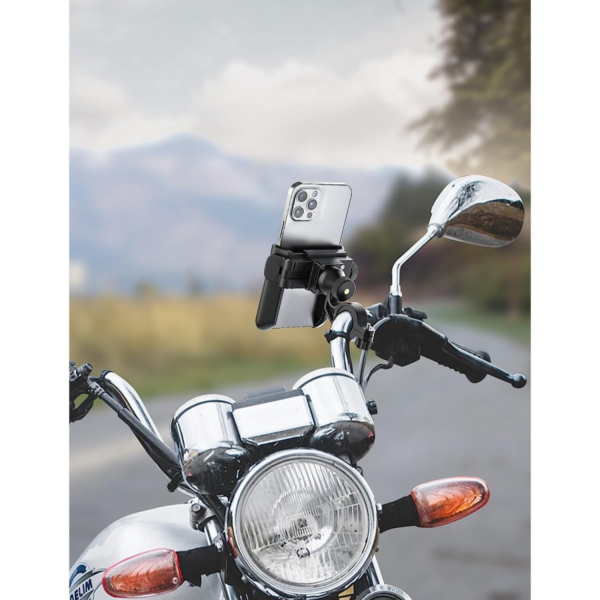 Notre Support pour motos permet de retirer son téléphone ultra rapidement et facilement (1 seconde environ) 🔥. Il permet de maintenir le téléphone dans différentes positions (vertical, horizontal,…) grâce à sa rotation de 360 ° permettant au conducteur de la moto d’avoir l’angle de vision parfait.