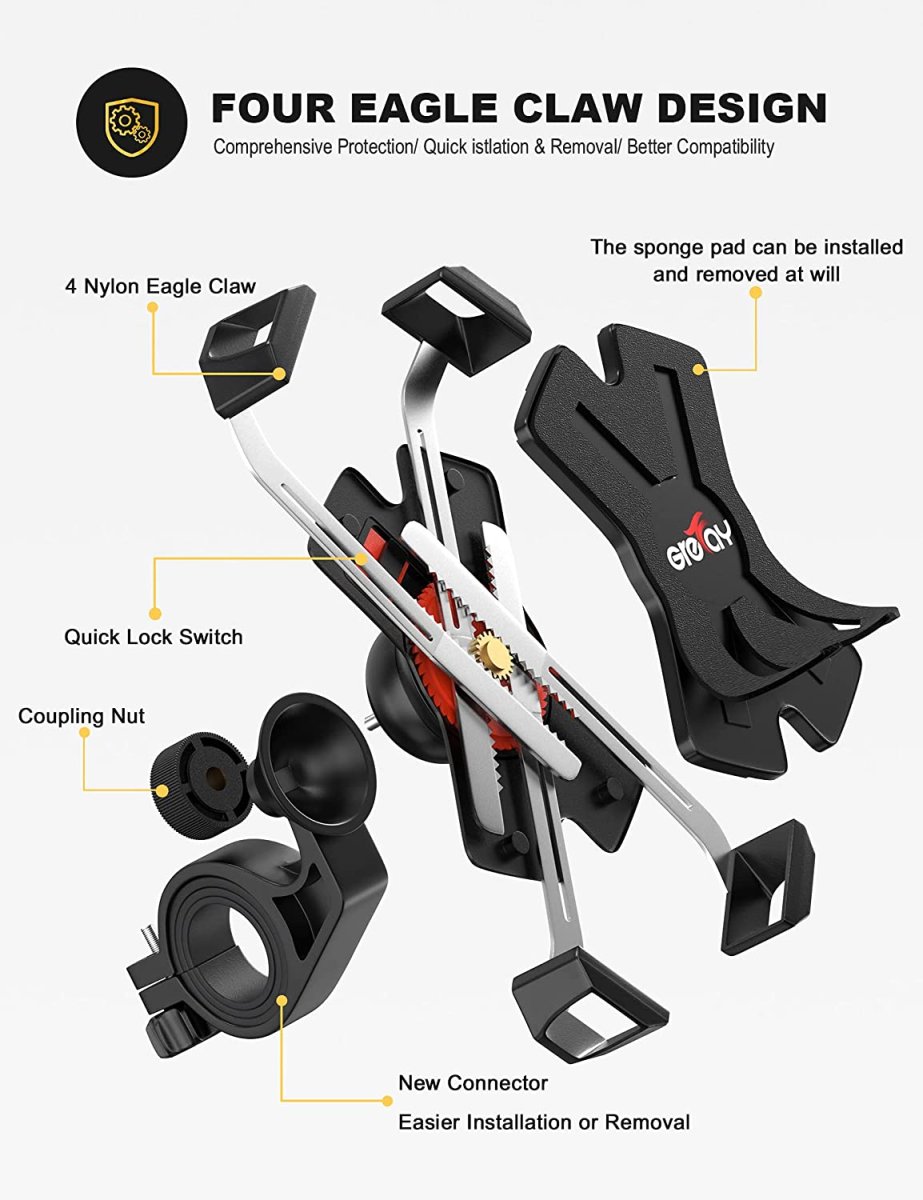 Notre Support pour téléphone portable Grefay dispose d’une conception ingénieuse et brevetée permettant, grâce à ses 4 puissantes pinces, de maintenir votre téléphone portable ultra stablement sans risques de chutes et avec des vibrations minimisées 🔥.