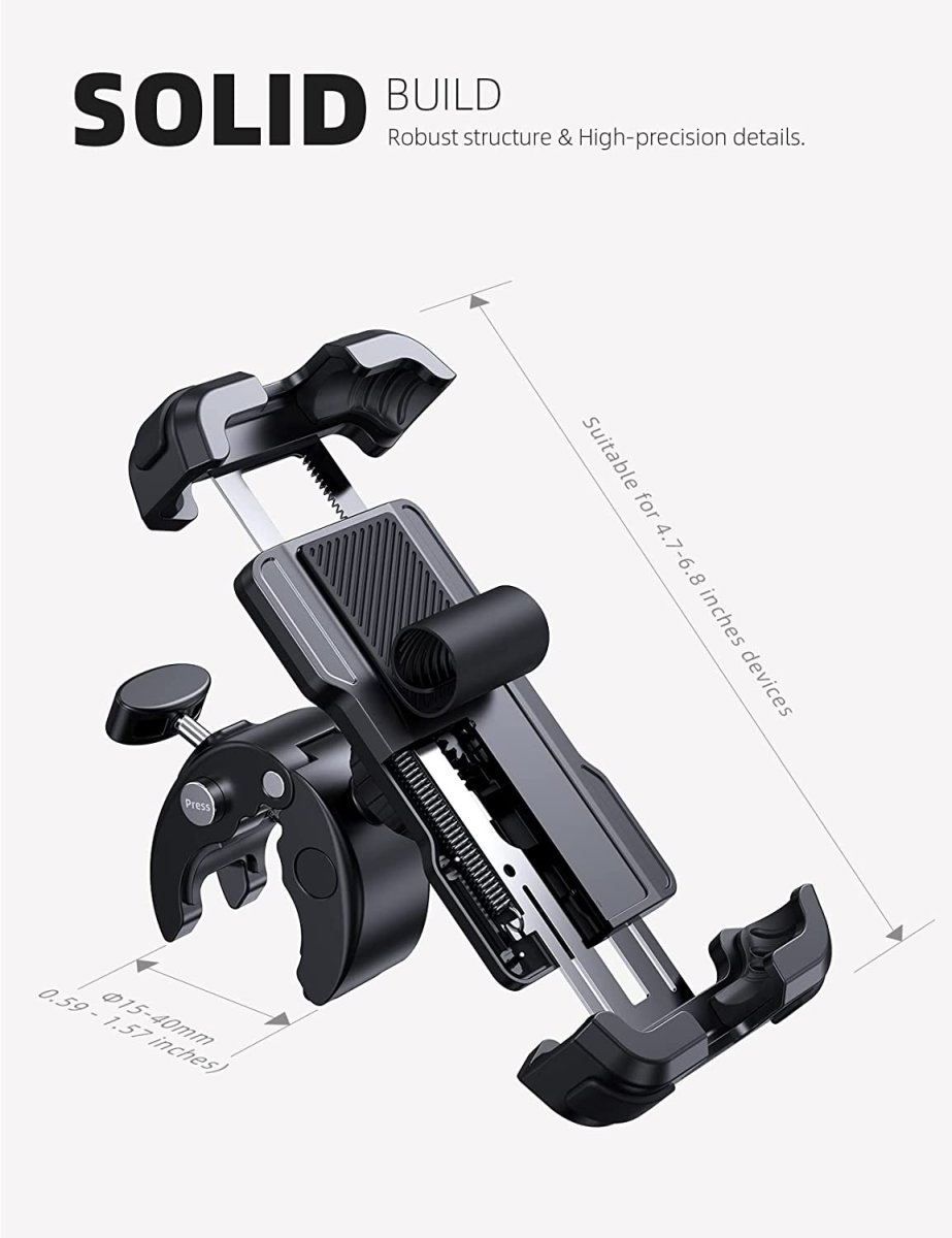 Sa conception résistante aux chocs protégera le téléphone des secousses, des pavés ou des virages serrés. Il a été conçu pour être compatible avec tous les smartphones d’une taille comprise entre 4,7 et 6,8 pouces, soit la grande majorité des téléphones, vous savez ainsi si votre téléphone sera adapté ou non.
