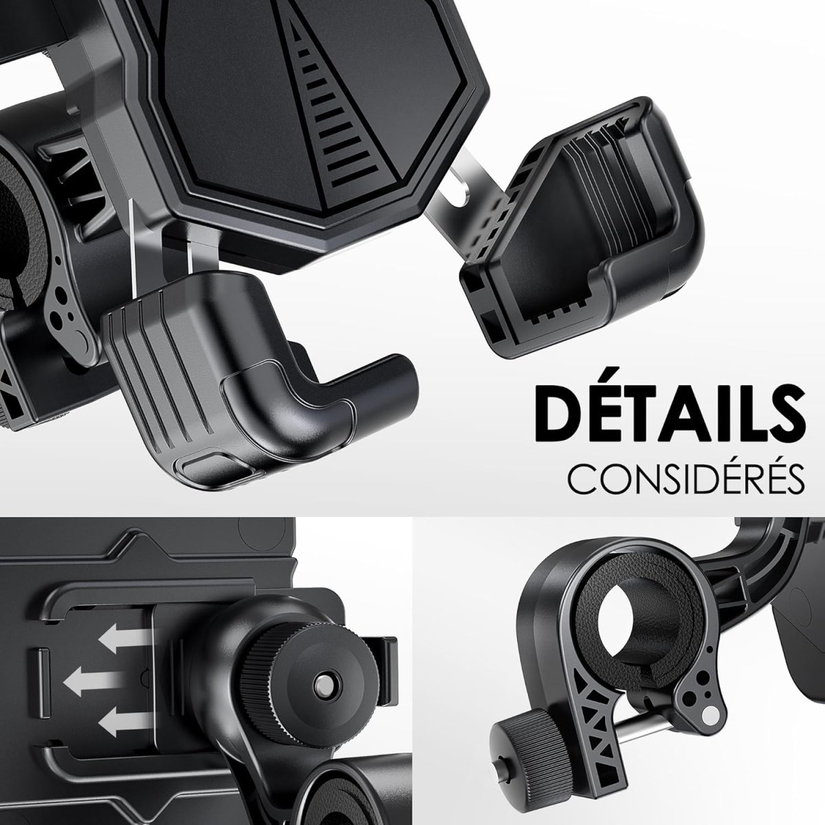 Conçu pour être intuitif, notre porte-téléphone pour deux-roues ne nécessite aucun outil pour sa mise en place. La fixation sur le guidon se fait en quelques secondes, et le retrait de votre appareil est tout aussi pratique et rapide.