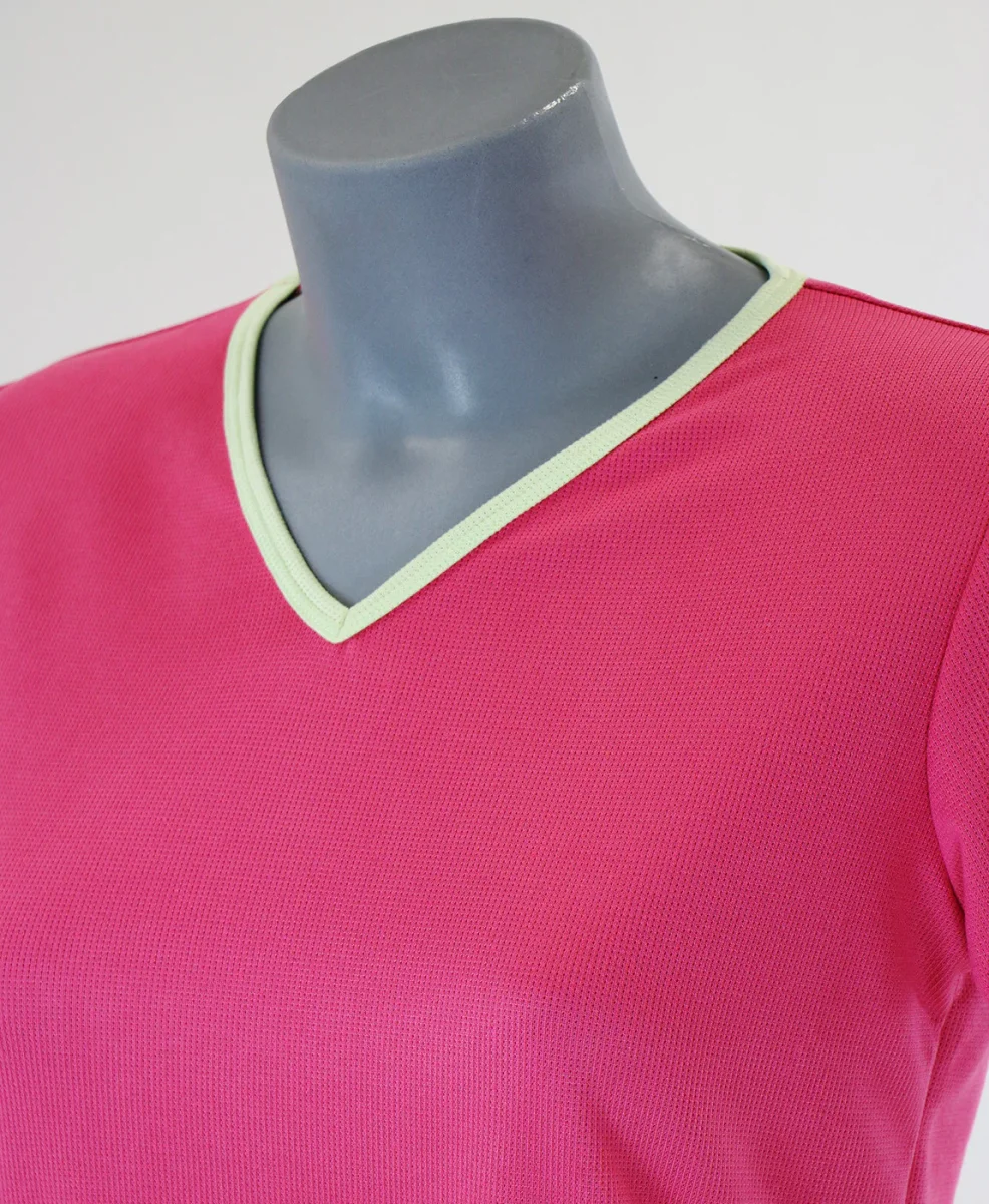 T-shirt respirant femme bicolore, col V, manches courtes.
