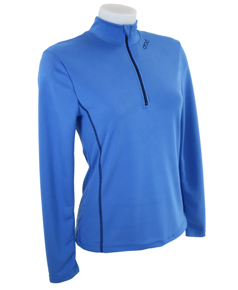 T-shirt respirant femme bicolore, col zippé, manches longues.