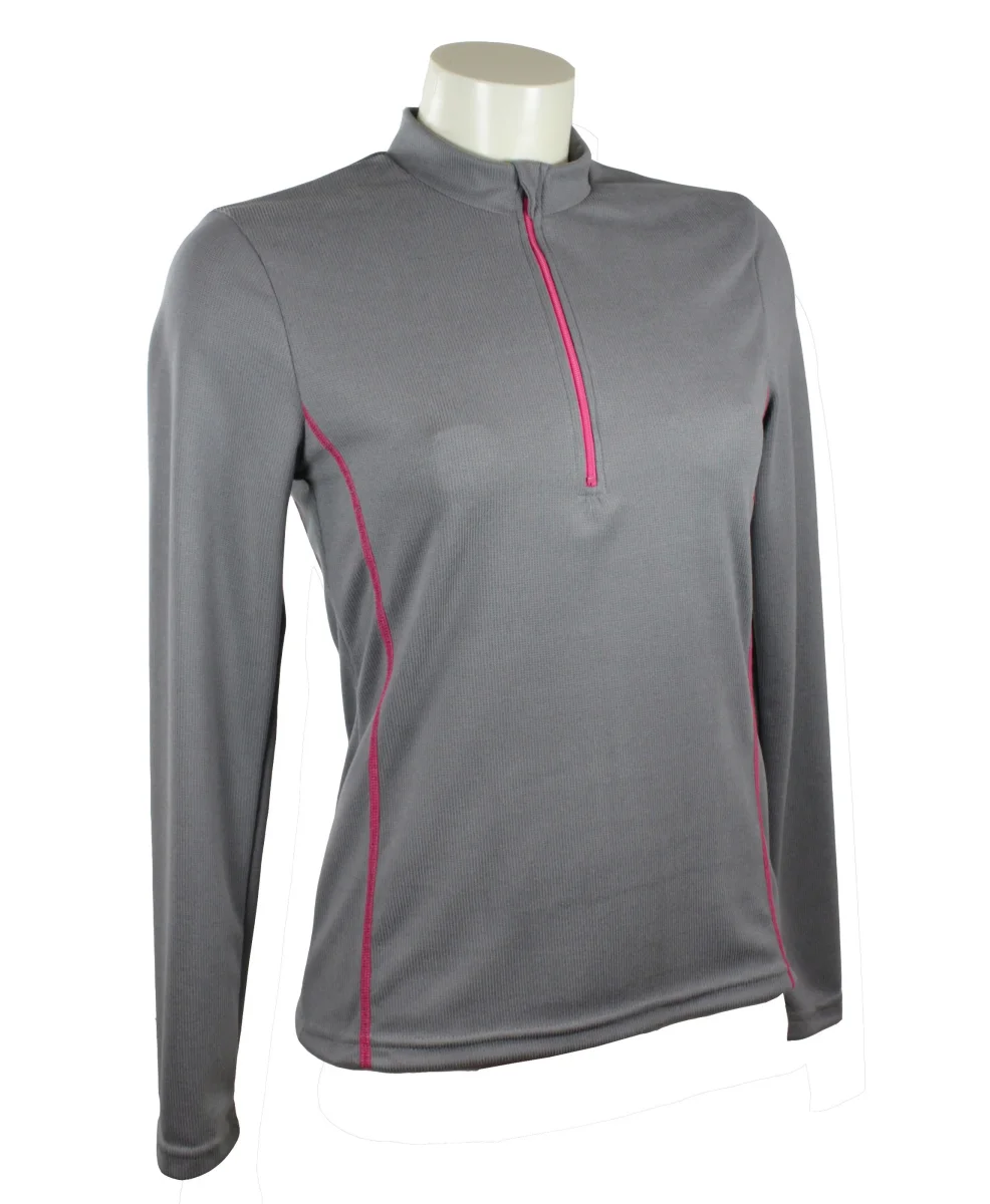 T-shirt respirant femme bicolore, col zippé, manches longues.