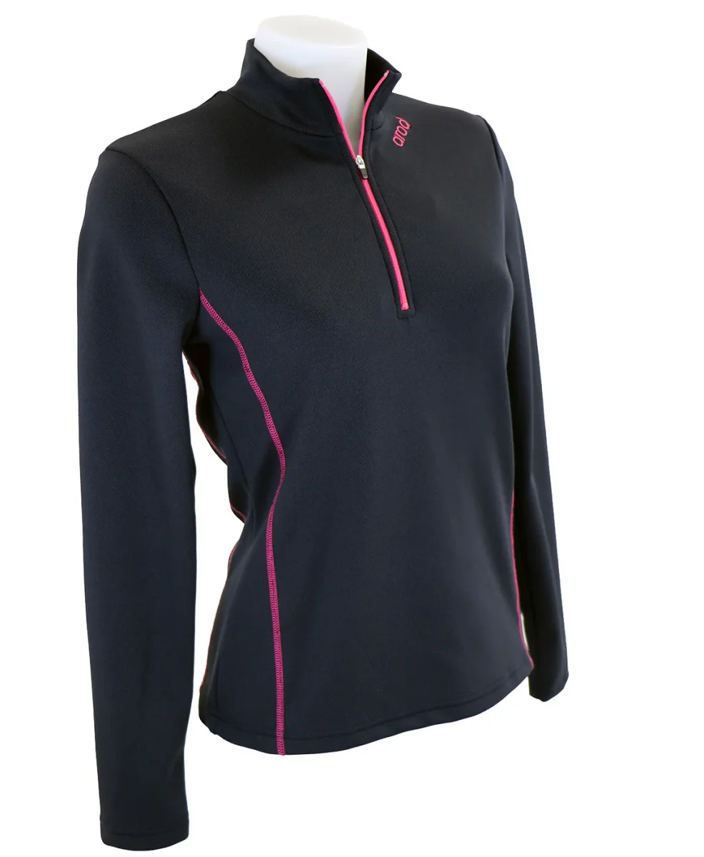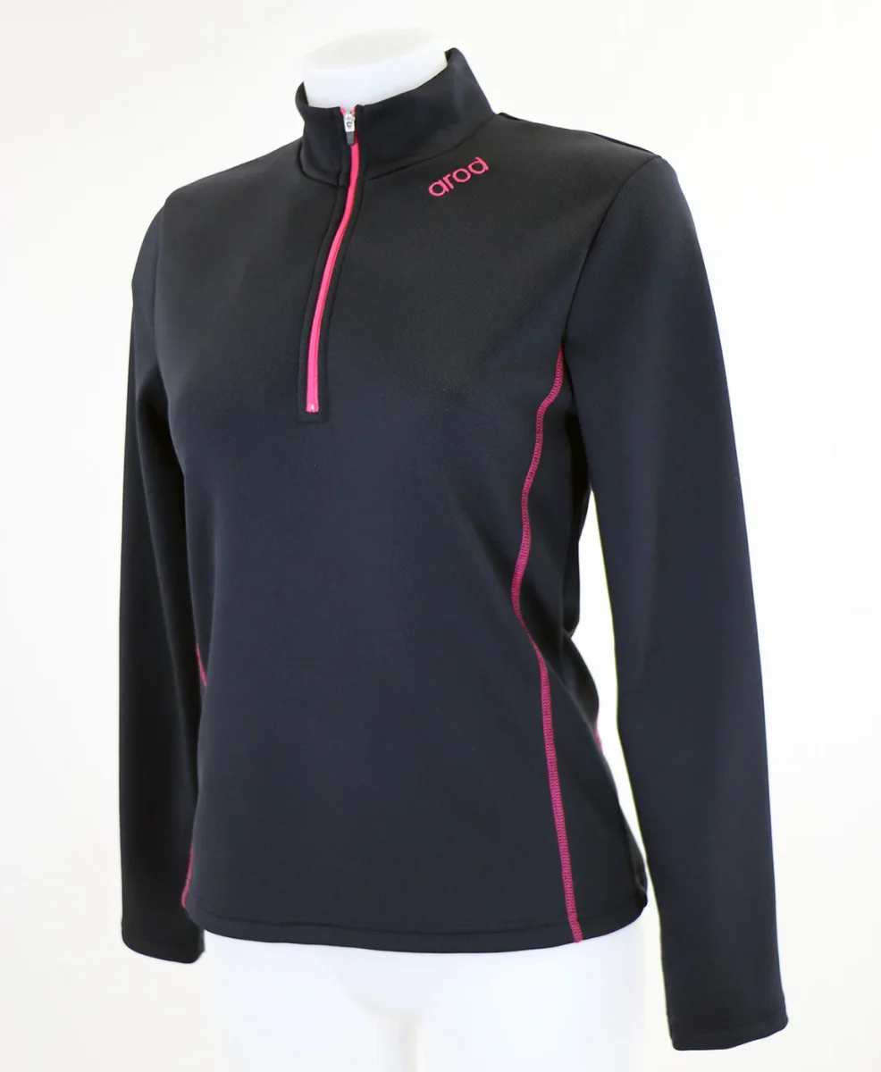 T-shirt respirant femme col zippé, manches longues.