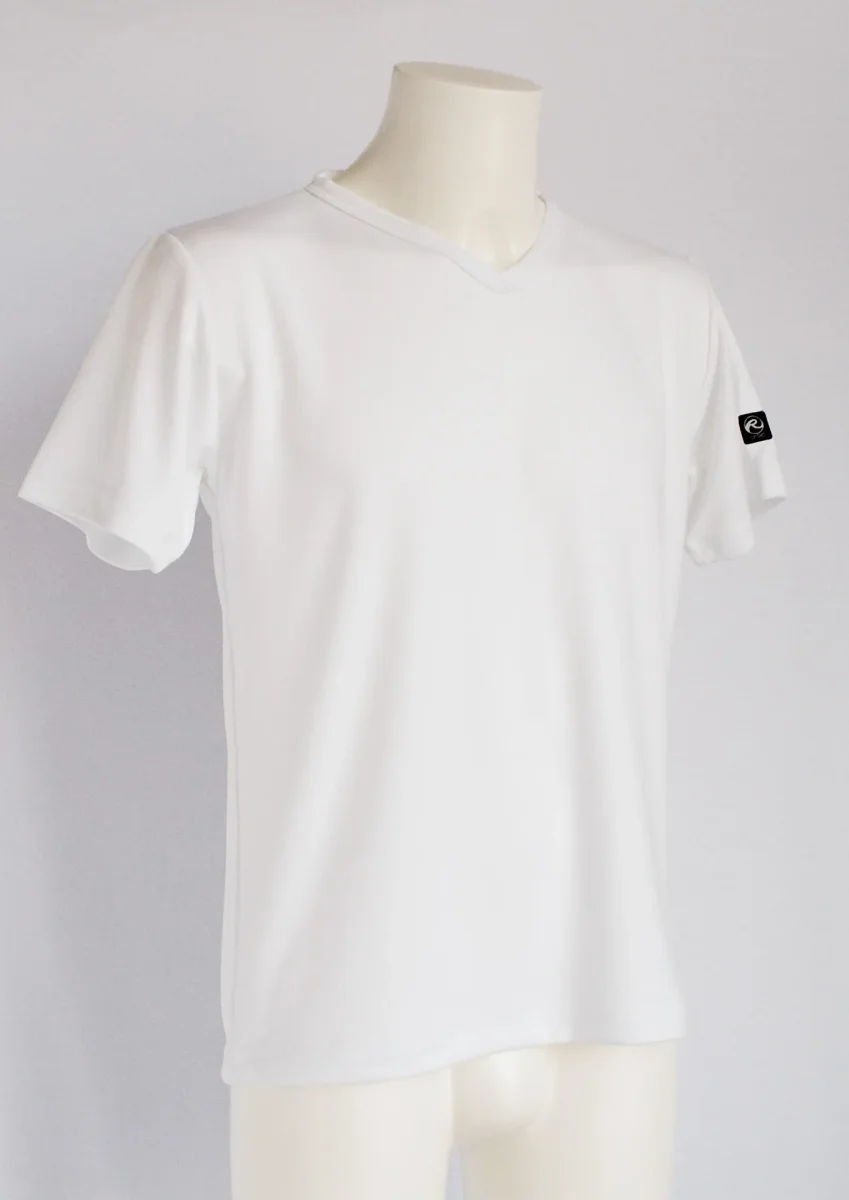T-shirt homme uni col V manches courtes, coloris Blanc.