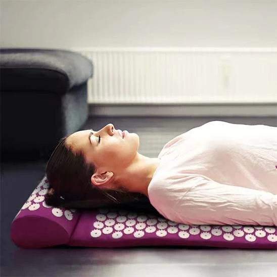 L’alliance du tapis et de son oreiller d’acupression crée une expérience complète de détente.