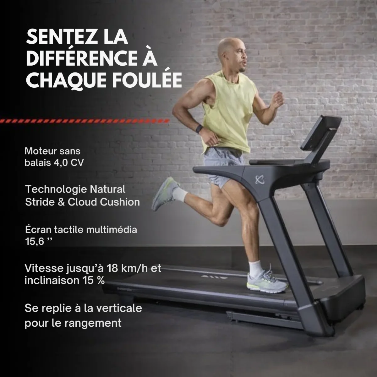 ENTRAÎNEZ-VOUS PLUS FORT : Vitesse jusqu’à 17,7 km/h et inclinaison jusqu’à 15 %