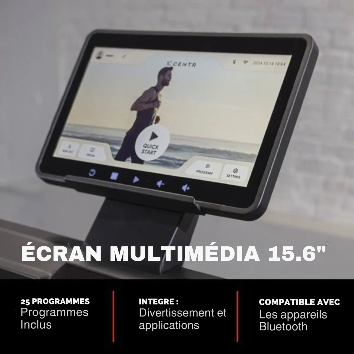 ÉCRAN TACTILE 15,6” : 25 programmes préinstallés, applications de divertissement et mirroring de smartphone pour vous motiver à chaque séance