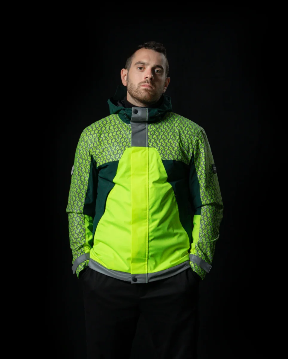 Cette veste assure une visibilité oculaire de jour grâce à ses empiècements de tissus technologiques fluorescents mais également une visibilité de nuit assurée par ses empiècements de tissu technologique réfléchissant UrbanReflect(r).